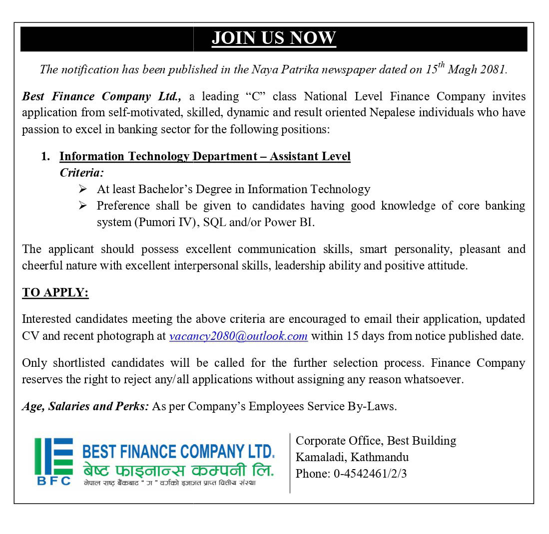 Vacancy for Assistant, IT department