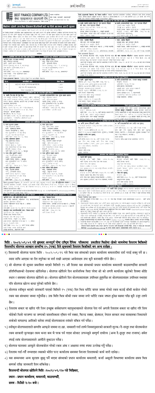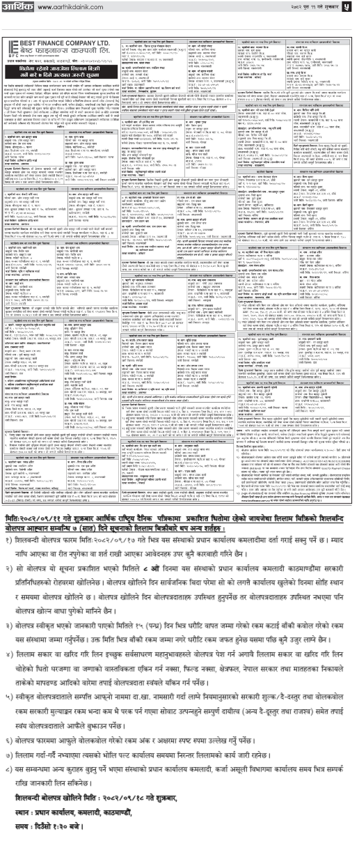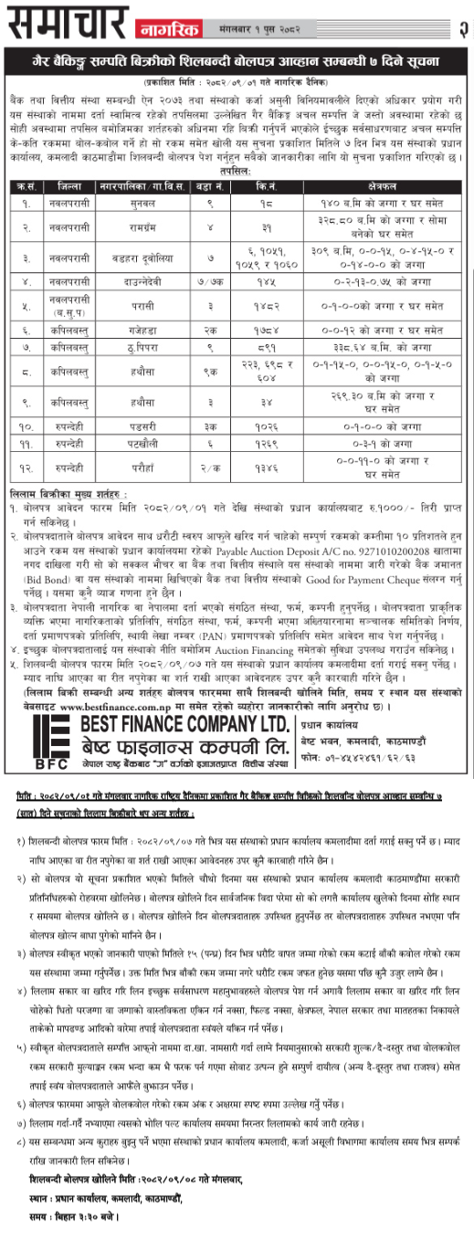 बैंकिङ / गैर बैंकिङ सम्पत्ति बिक्रीको सिलबन्दी बोलपत्र आह्वान सम्बन्धी ७ दिने सूचना