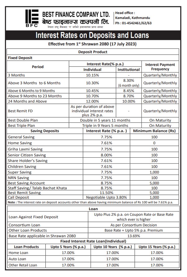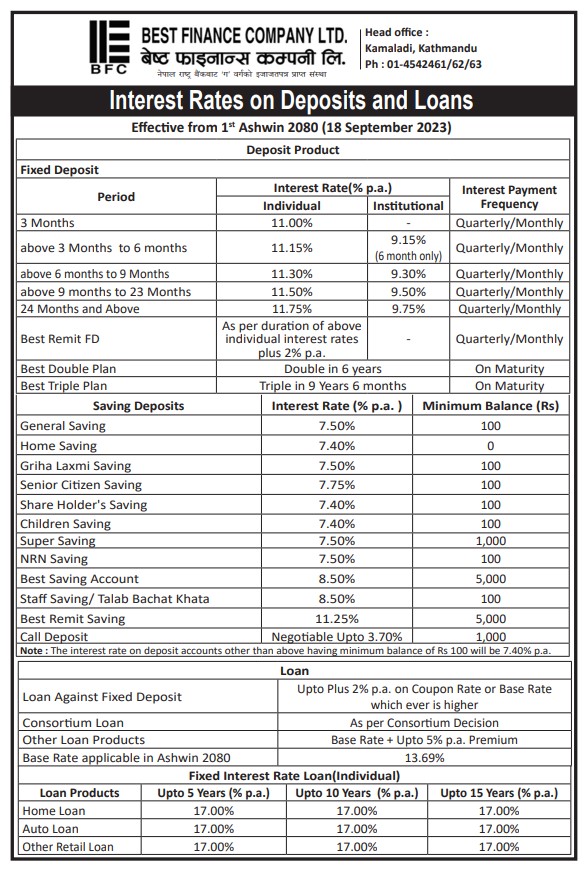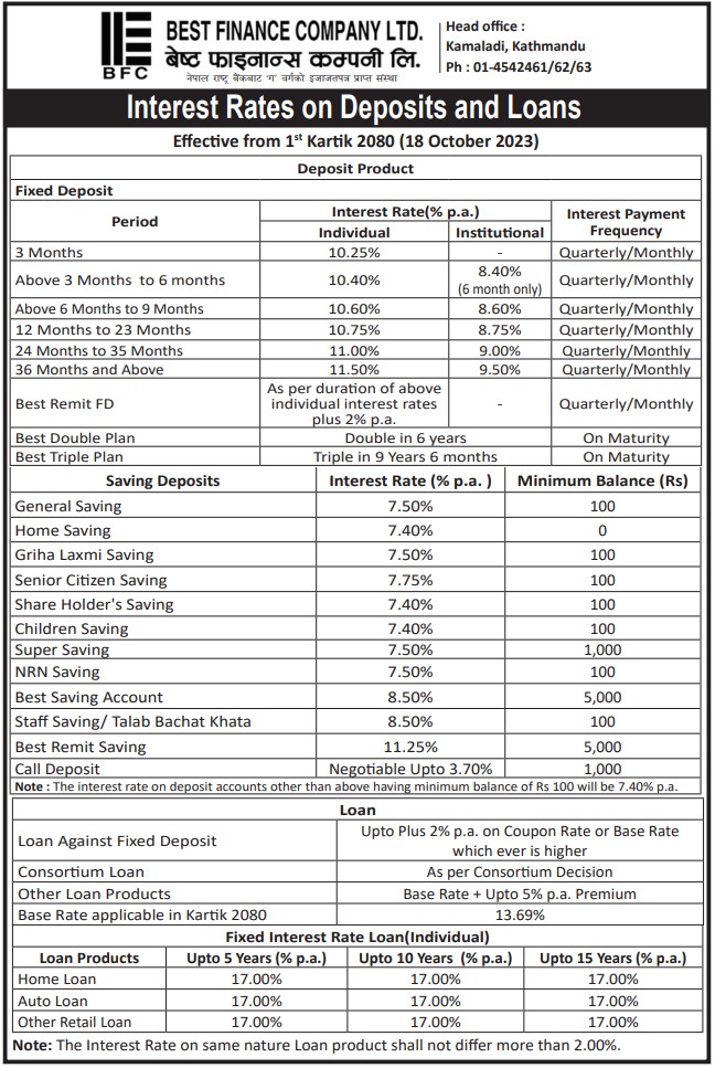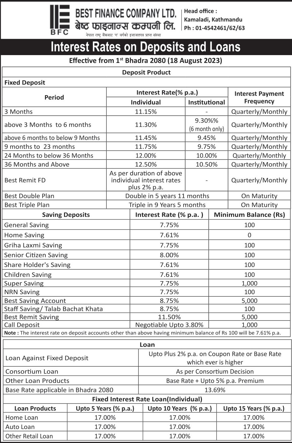 INTEREST RATE EFFECTIVE FROM 2080 BHADRA 1