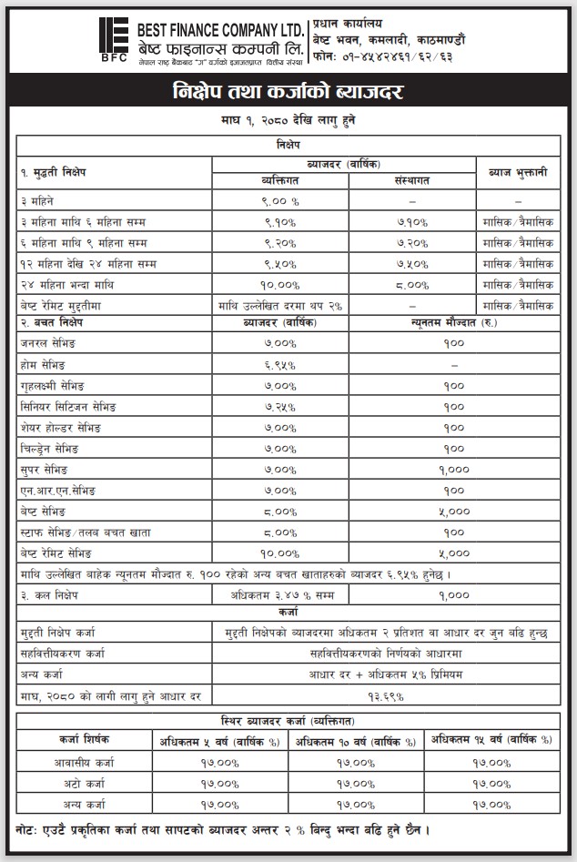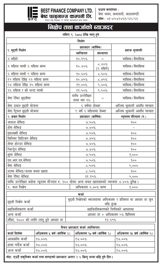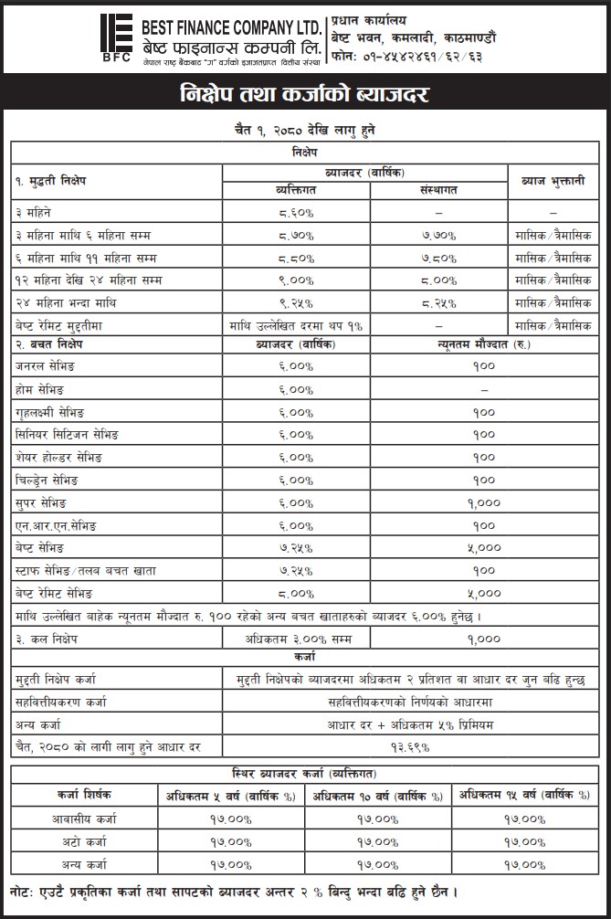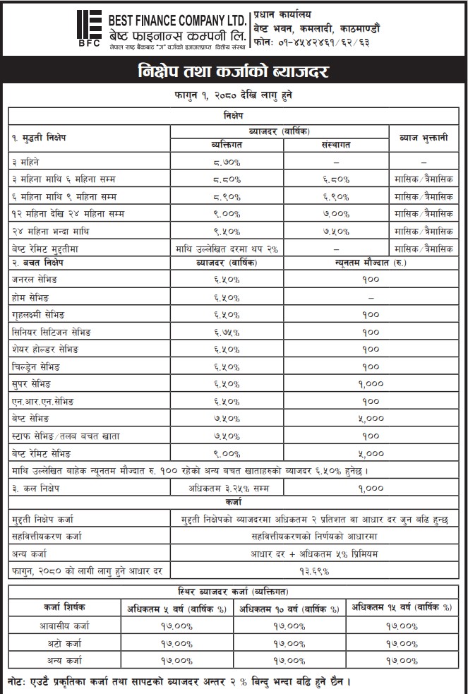 INTEREST RATE EFFECTIVE FROM 1 CHAITRA 2080